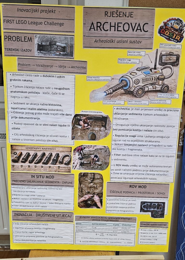 Projekt pokazuje kako se pametnim korištenjem tehnologije može uštedjeti energija i smanjiti fizički rad čovjeka. Archeovac omogućuje precizno i kontrolirano uklanjanje sedimenta, štiti osjetljive nalaze te ubrzava istraživački proces – uz manji utrošak ljudske snage.